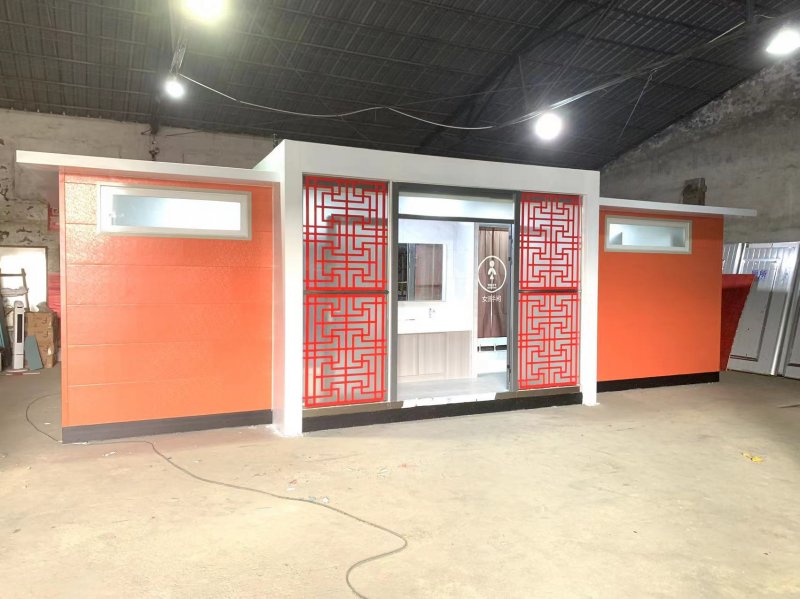 拼裝廁所;在廠里做好各個廁所部件,再到現場組裝在一齊,適合不易運輸的大型廁所。這座箱式廁所,女廁5個蹲位內配工具間,男廁2個蹲位+2小便斗,第三衛生間由殘疾馬桶、助力洗手盆和兒童馬桶、兒童洗手盆外加嬰兒臺等設施。廁所前后有窗,通風采光,前部走廊裝有屋檐,防雨防曬。此廁所位于公路綠道邊,整體大氣,功能齊全,造型美觀,是一道難得的靚麗景觀!
